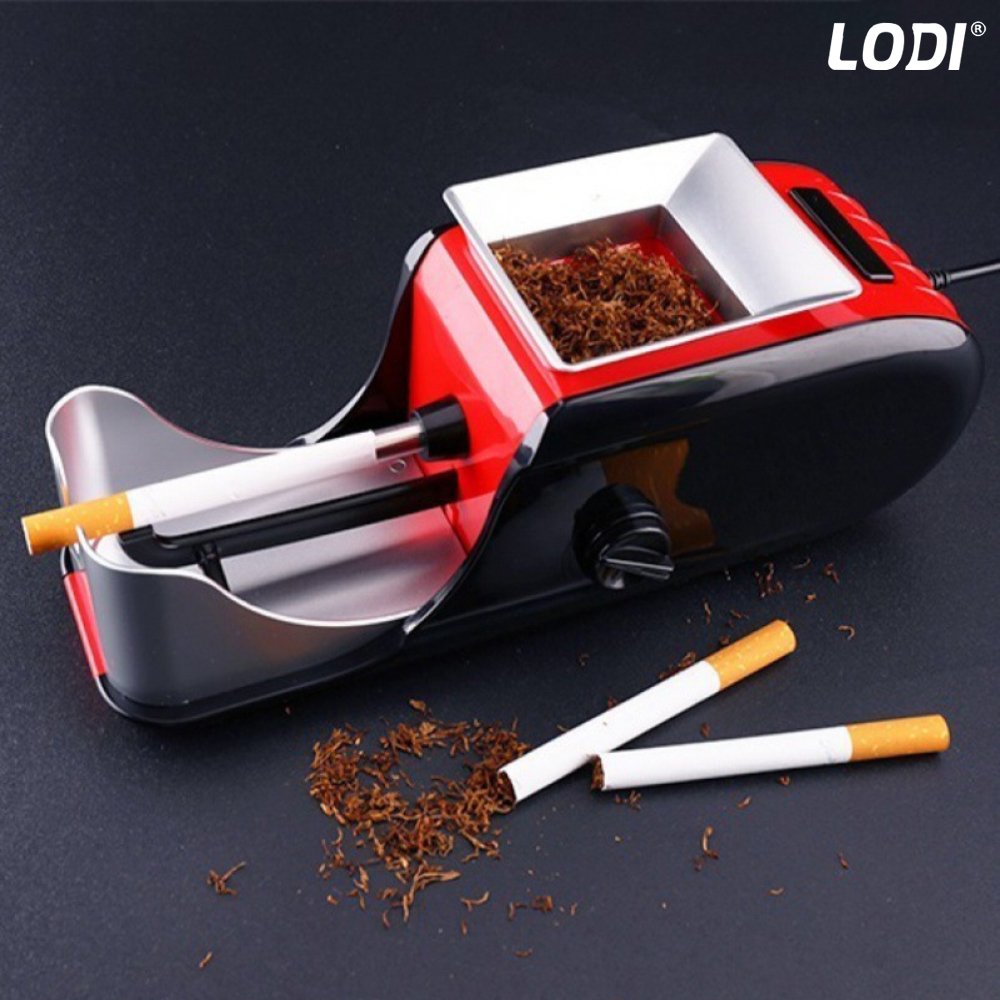 Aparat Electric de Facut Tigari Lodi271, 3 niveluri de maruntire, injector de tutun, dimensiune standard, ergonomic, accesorii incluse, rosu/negru