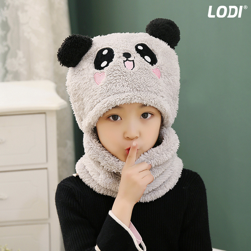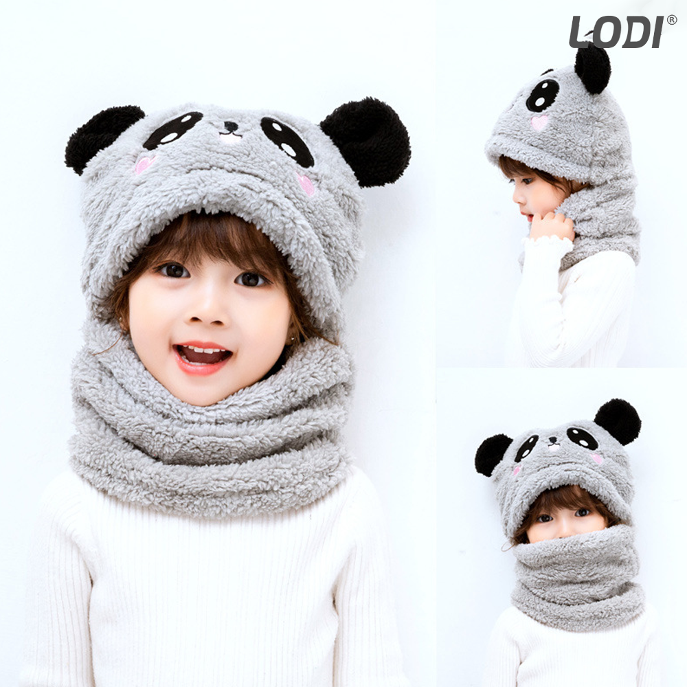Caciula Pentru Copii Tip Cagula Lodi520, 2 in 1, tematica lumea animalelor, model ursulet panda zambitor, 1-5 ani, gri