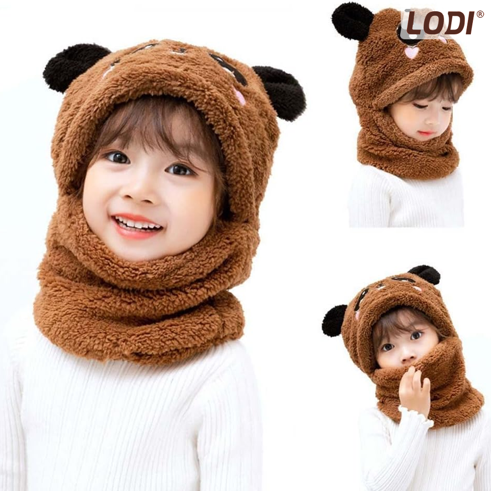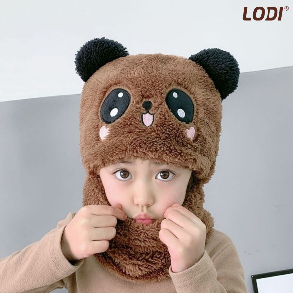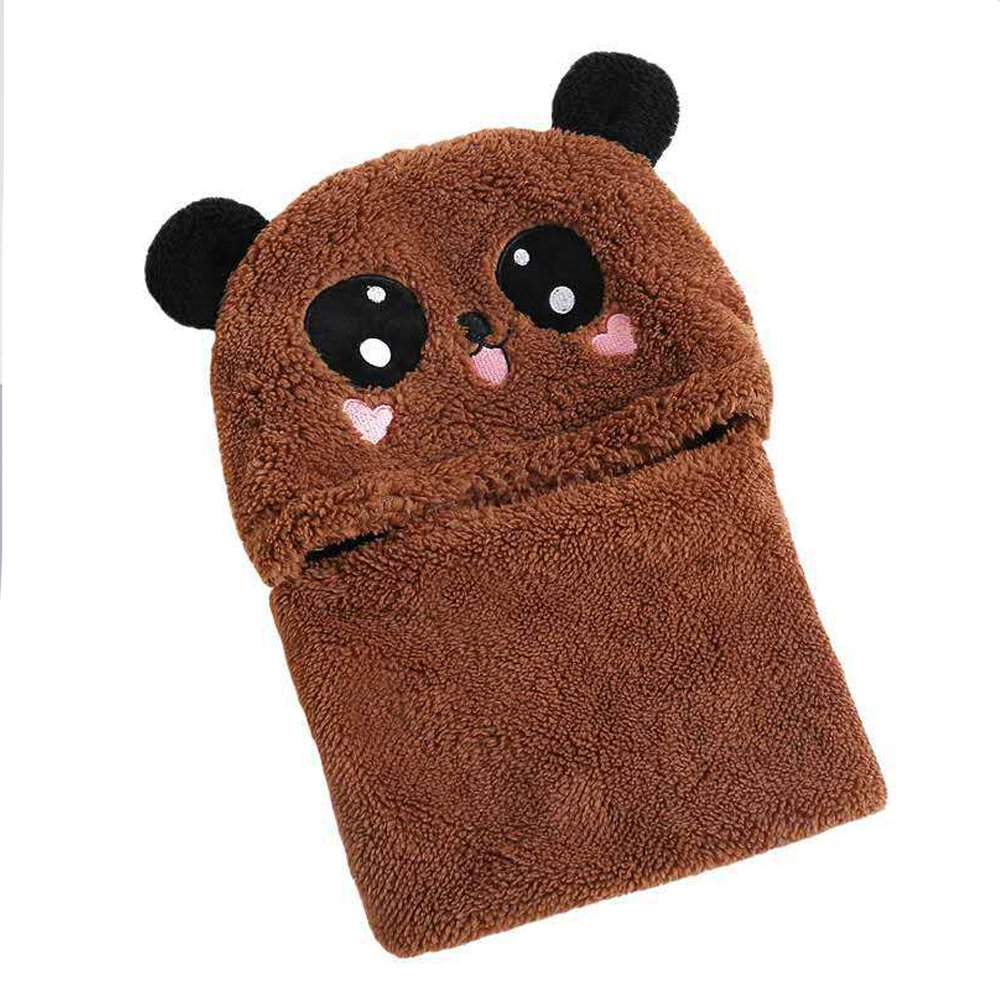 Caciula Pentru Copii Tip Cagula Lodi521, 2 in 1, tematica lumea animalelor, model ursulet panda zambitor, 1-5 ani, maro
