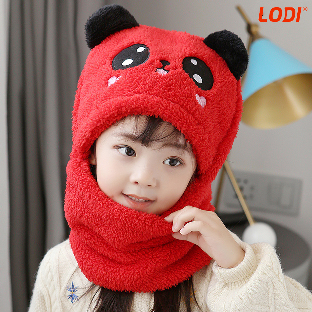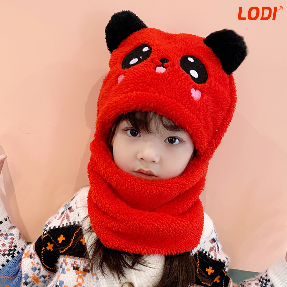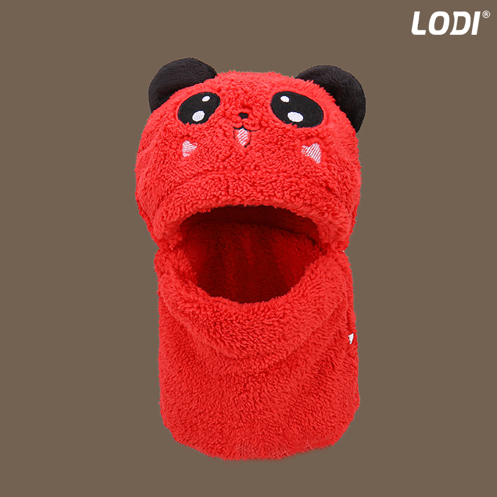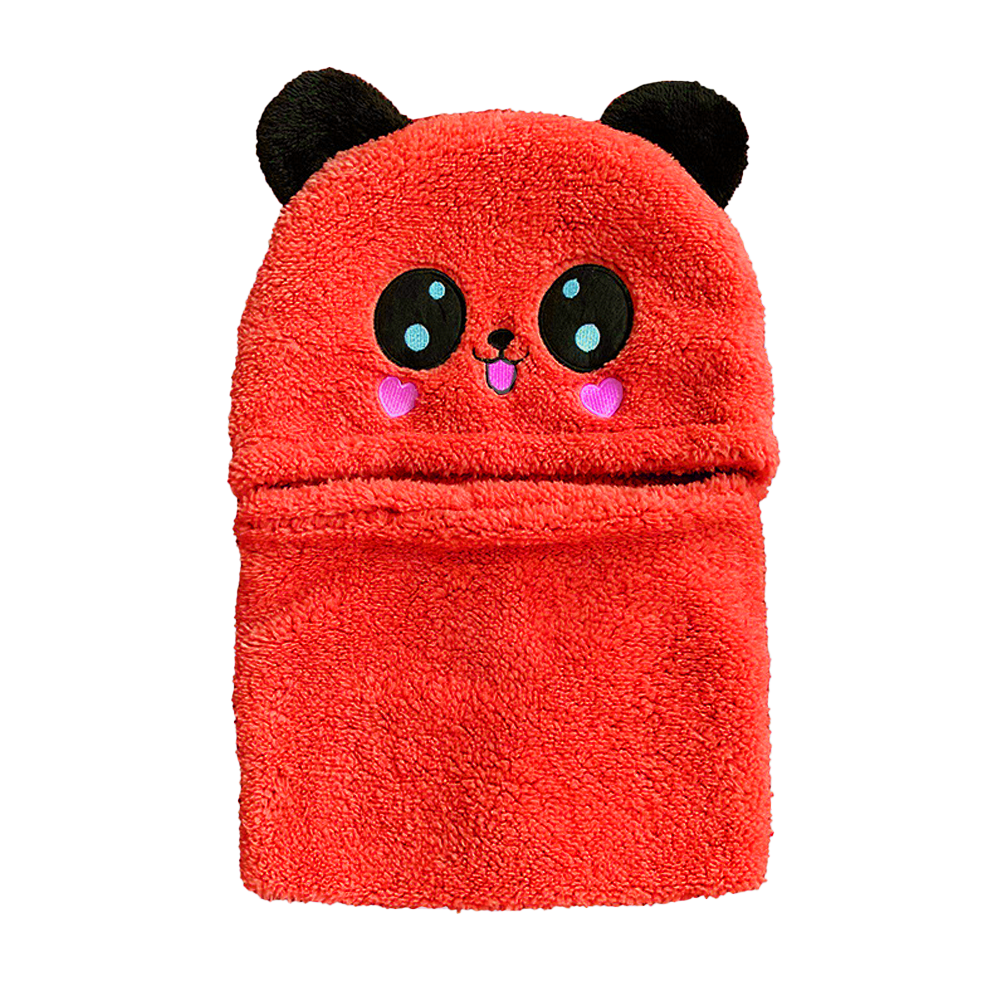 Caciula Pentru Copii Tip Cagula Lodi522, 2 in 1, tematica lumea animalelor, model ursulet panda zambitor, 1-5 ani, rosu
