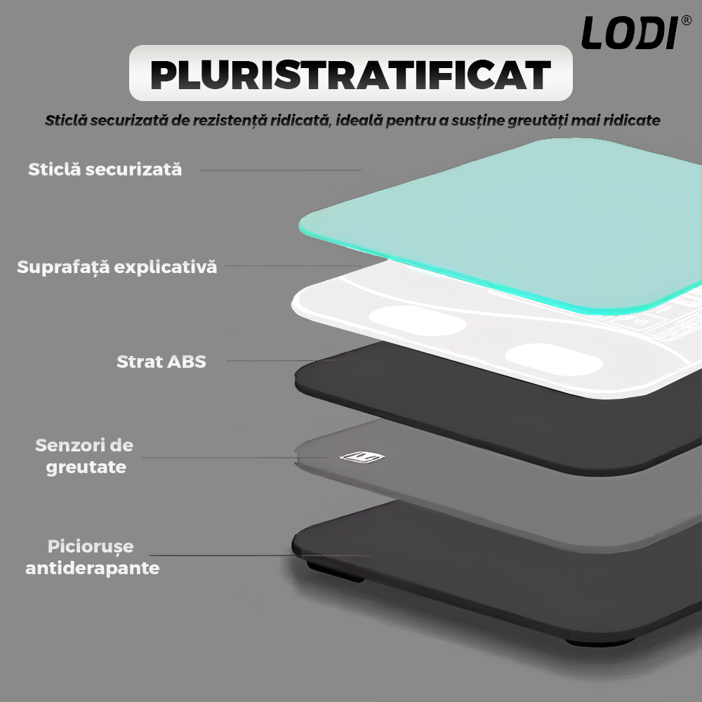 Designul pluristratificat nu doar ca ofera durabilitate, dar si o estetica moderna si eleganta. Fiecare strat este atent ales pentru a asigura un echilibru perfect intre functionalitate si aspect vizual. Stratul superior este realizat dintr-un material rezistent, care protejeaza componentele interne si confera o suprafata neteda, usor de curatat. Aceasta constructie complexa nu compromite nici confortul, nici performanta cantarului, fiind un exemplu de inginerie de calitate.