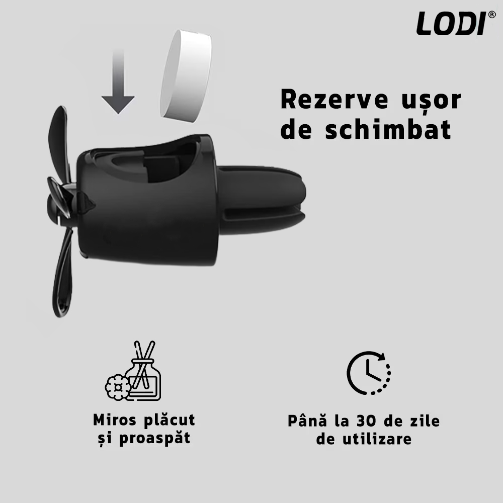Nu doar atat, elicele odorizantului se invart in momentul in care porniti ventilatorul masinii.
