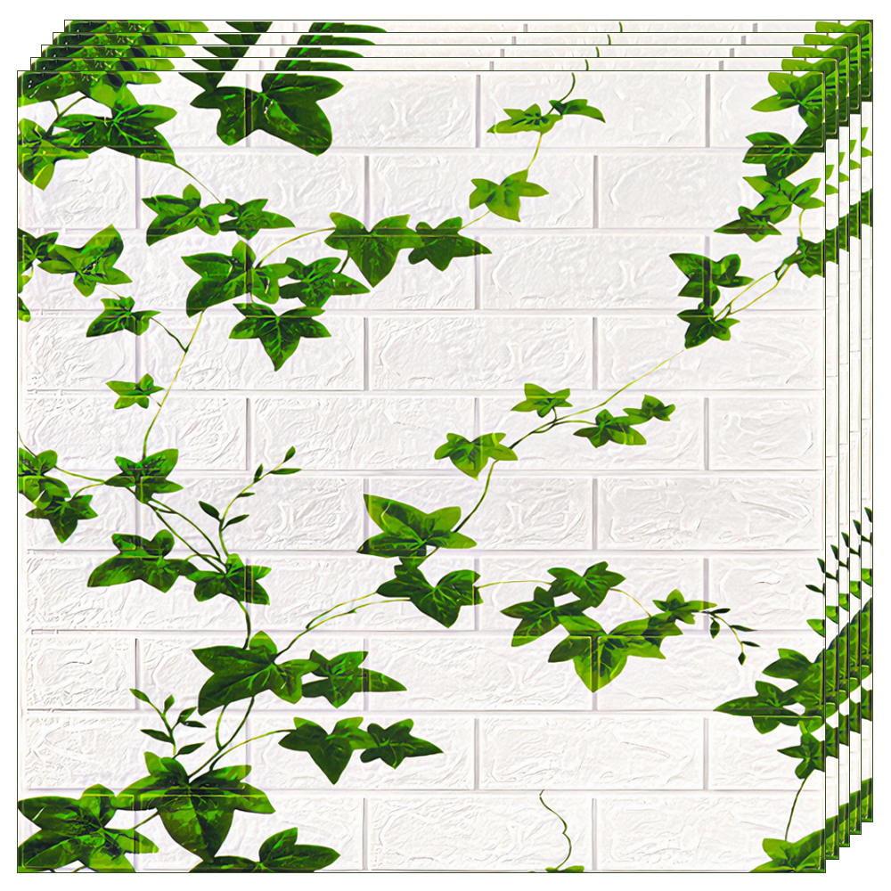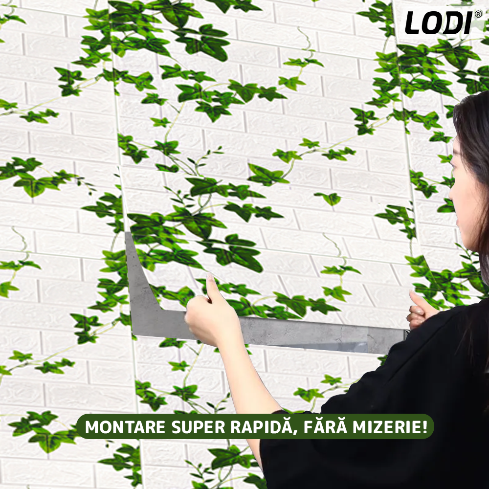Set 10x Tapet Caramida 3D Lodi1090, model Iedera, suprafata acoperire 4.9 mp, autoadeziv, waterproof, usor de montat, design modern, 70x70 cm, alb