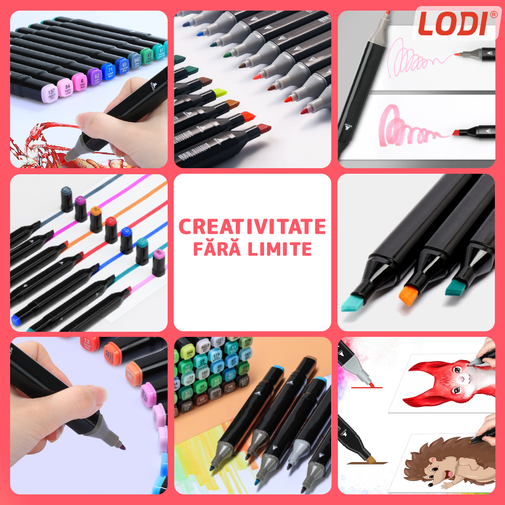 Indiferent de tipul de desen pe care doriti sa-l realizati, setul de markere cu varf dublu va va oferi instrumentele potrivite pentru a explora creativitatea intr-un mod captivant si expresiv. Cu o gama larga de culori si posibilitati de creatie, veti gasi cu usurinta inspiratie pentru a incerca diverse stiluri artistice si a crea opere de arta remarcabile.