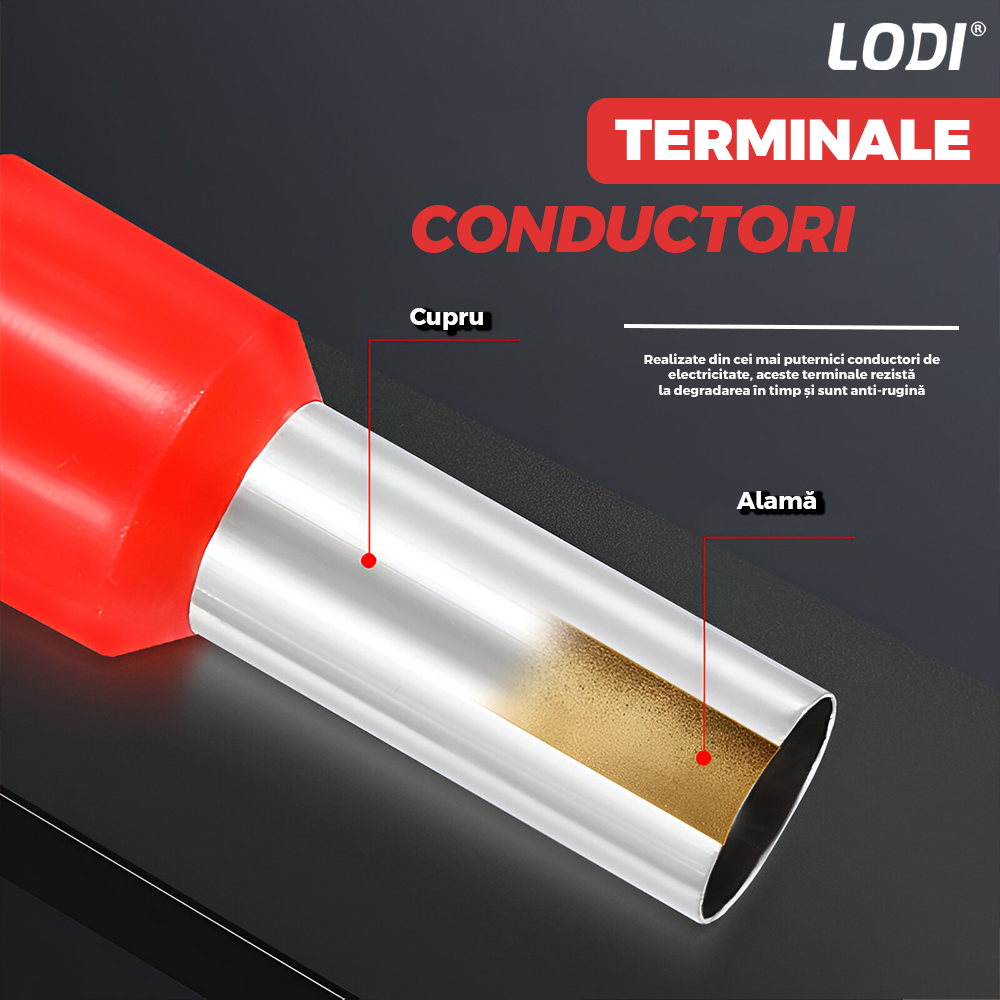 Pini terminali de calitate: Terminalii sunt realizati din cupru si alama, materiale care asigura o conductivitate electrica excelenta si o rezistenta mecanica superioara.